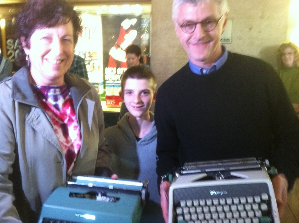 Co-Hosts: Michael Ardito of Home Town Business Machines and Typist Extraordinaire Matt Cidino did yeoman duty; keeping paper in everyone’s rollers and collecting all manner of typed missives. They were joined in this by Trophy Bikes’ TJ Seningen (who sustained a flesh wound on a “No Stopping” sign during our load-out–he’s healing nicely) and by walk-on wonder Lauren Zapata–a young writer who moves her work back and forth from computer to typewriter during the creative process. They helped fill up the cheeriness deficit created by yours truly.