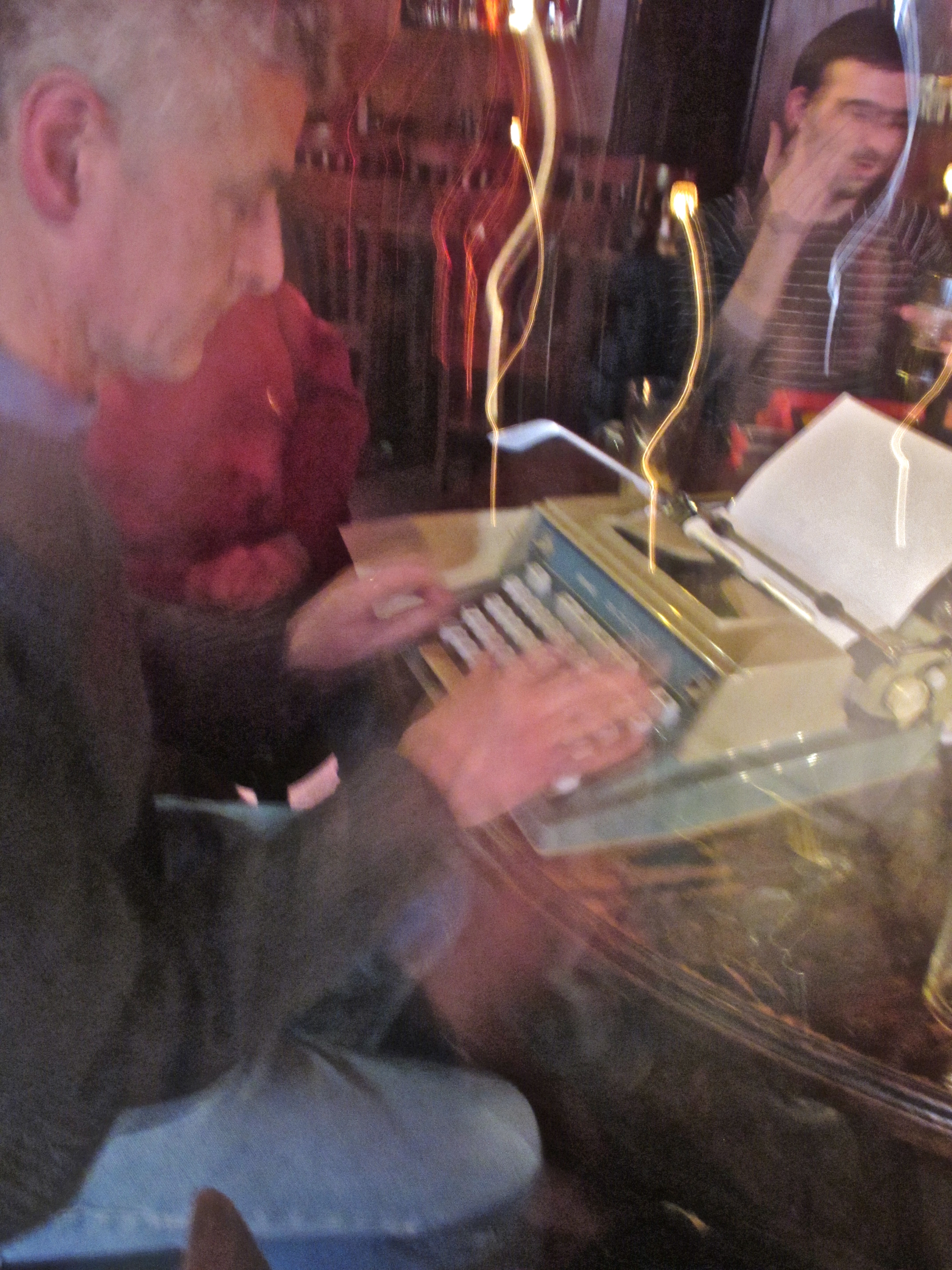 Below, Philadelphia Inquirer movie critic (and author of the new book Hollywood Rides a Bike) lights up the keys at the Son of Type-IN….