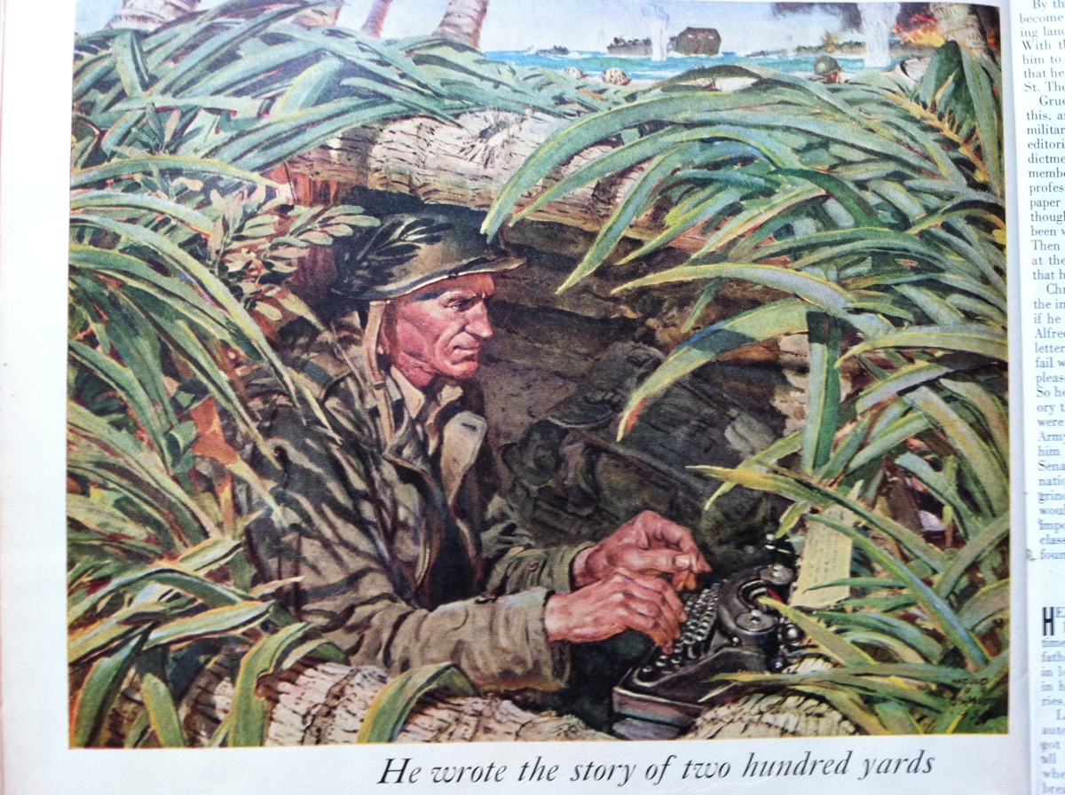 1. They’ve made his hands look so beefy that it seems impossible to type on that delicate Remington Noiseless.