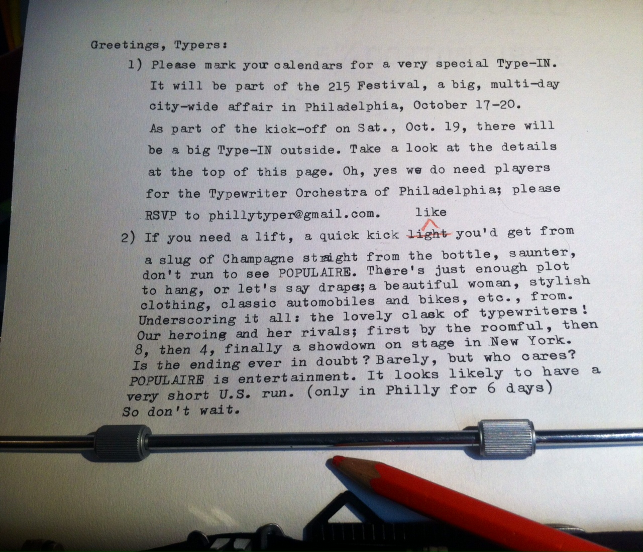 • Yes, Dear Phillytyper readers, this T-I should be a bit different from past affairs; outdoors for one, with amplified typewriting, for two, and making use of a couple dozen helium balloons for three. See above Type-IN for more info.