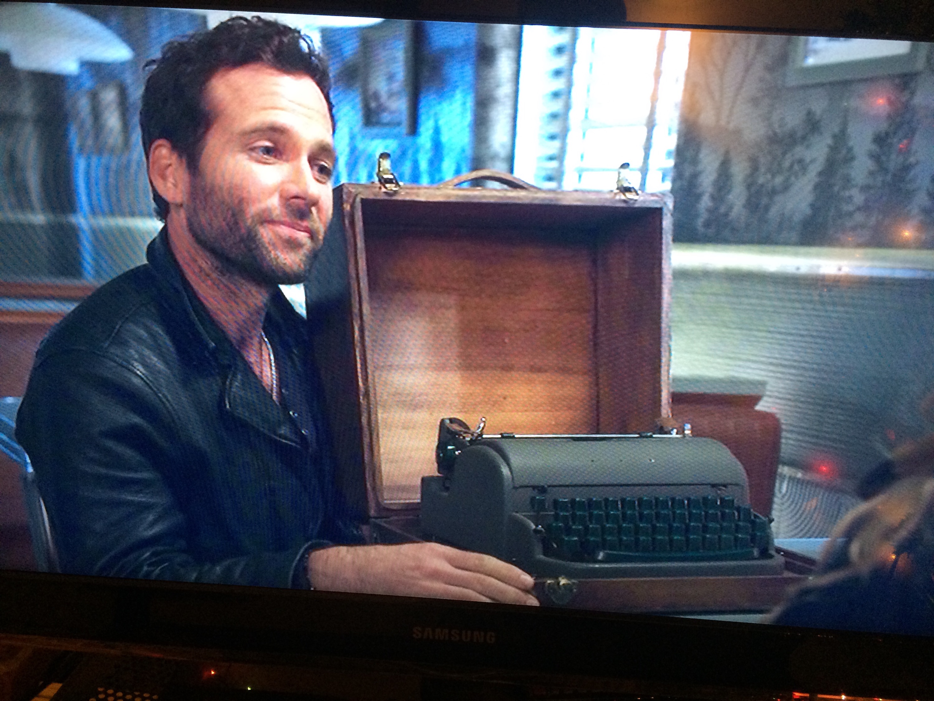 “I’m a… Writer…” He adds, a bit pretentiously; oh, that clears up everything — not really…of course the logo has been removed — any ideas on the make and model? (confirmed as a REMINGTON ALL-NEW, ca. 1949 — Thanks Piotr & Don! — and of course, thanks to http://www.typewriterdatabase.com ) Wonder how the ad copy kids handled that model name, though? “Introducing the New, Remington All-New… it’s all new for you…” Um… Then they could bring back the Remington CLASSIC, like Coke did in that major marketing stumble.