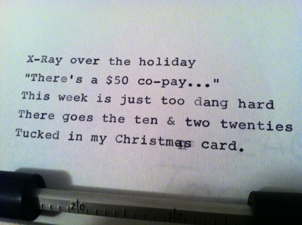 Here’s a ’50s (?) Olympia SG-1, nicely gone over by Gramercy Typewriter (had my other one repaired by Tom at Cambridge up in Boston) and boy, is this thing solid. If I was a big heavy desk top, I’d certainly welcome a chance to get out of the house, so will definitely be lugging one of these fellows to the Type-IN on December 8th... heh, have to mention it again….