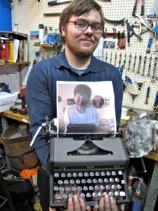 Serious thanks to young Matt Cidoni, who trekked down from central N.J. (60 miles) with four typewriters and was put straight to work–typing up the guest list (now missing FOUND!), matching people with typewriters, popping in ribbons, and giving great quote to a stack of reporters like a pro.