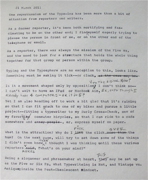 2) The word is that Brooklyn Writing Machines is planning their own Type-IN at the Brooklyn Flea this spring.  I hope to take part and will post more here.