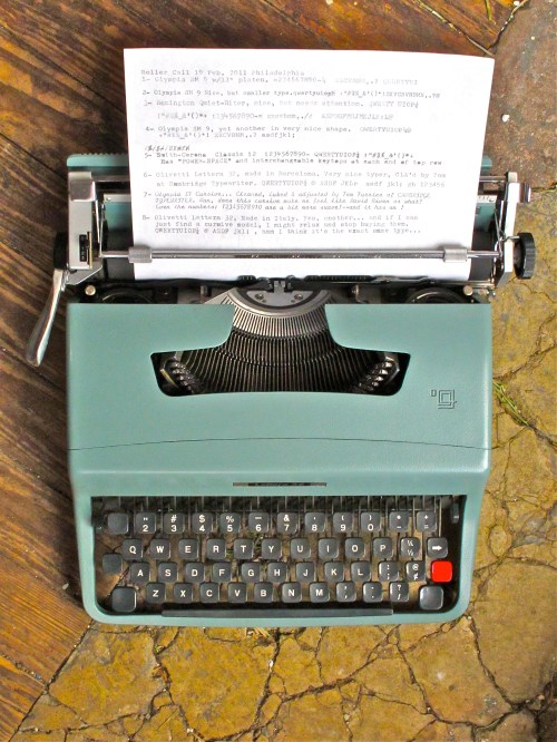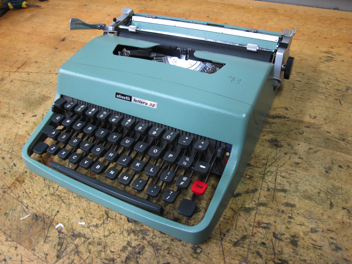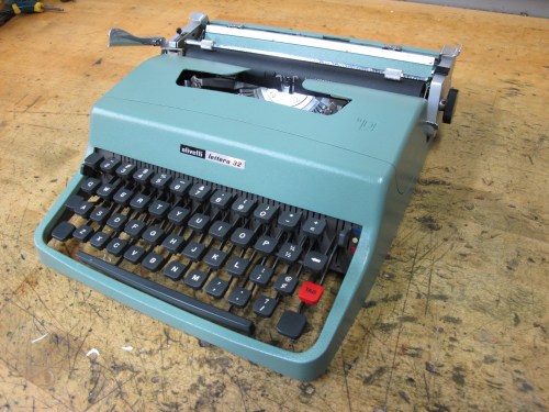 OLIVETTI Lettera 32 — This one’s from home base–Italy.  It stays at home, mostly, while the BCN model is at the bike shop.  If I find one in cursive, I will stop buying them–maybe.